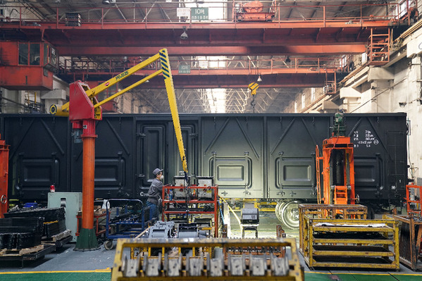 中車(chē)齊車(chē)、中國(guó)一重所在地齊齊哈爾市,上半年GDP同比增長(zhǎng)0.7%,在黑龍江省排名第一,同比全國(guó)、全省高出2.3%、5.6%。圖為中車(chē)齊車(chē)公司生產(chǎn)車(chē)間,工人在生產(chǎn)作業(yè)。