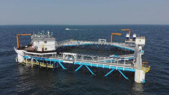 “同時,憑借依托海洋牧場設(shè)施及裝備及管控技術(shù),我們公司在萊州灣建設(shè)了220個離岸深水網(wǎng)箱,1個400米周長大型生態(tài)圍網(wǎng)‘藍鉆一號’和一個160米周長大型休閑圍網(wǎng)‘藍鉆二號’,形成36萬立方米的深水網(wǎng)箱遠海養(yǎng)殖基地,實現(xiàn)循環(huán)水與深水網(wǎng)箱和生態(tài)圍網(wǎng)相結(jié)合?!崩钗纳榻B,“這種‘陸海接力’的養(yǎng)殖模式可實現(xiàn)名貴魚種的高效健康養(yǎng)殖,并已在全國示范推廣。”