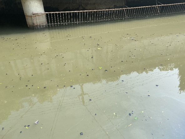 鐘祥護(hù)城河在晴天時(shí)的污染狀況并沒有市住建局負(fù)責(zé)人所言的樂觀。本報(bào)記者先后三次探訪鐘祥護(hù)城河時(shí)均無降雨,看到和嗅到的都是污濁腥臭的河水。當(dāng)?shù)厝罕娨蚕蛴浾咦C實(shí),不論晴天和雨天,護(hù)城河都渾濁不清還帶有一股臭水溝味,下大雨時(shí)污染更重。