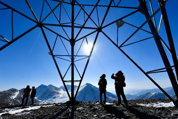 國家電網(wǎng)西寧供電公司輸電運檢中心運檢人員在查看線路覆冰情況。