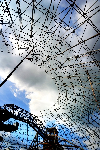 工人正在搭建福建水泥九號窯煤均化堆場。資料照片