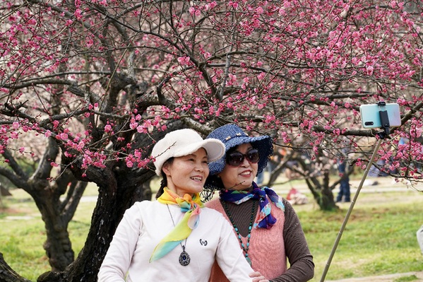 春節(jié)假期,武漢東湖梅園的梅花競(jìng)相綻放,吸引眾多市民來這里賞梅拍照。記者 余國(guó)慶 攝