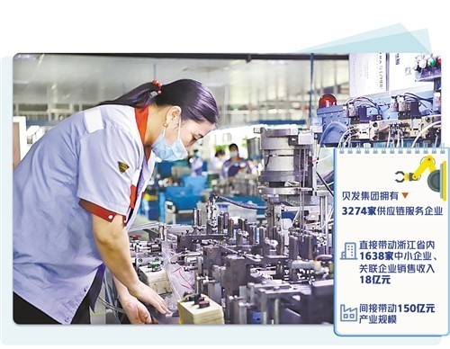位于浙江省寧波市的貝發(fā)集團(tuán)以制筆起家,是目前國(guó)內(nèi)文具行業(yè)的龍頭企業(yè)。貝發(fā)集團(tuán)整合產(chǎn)業(yè)鏈、供應(yīng)鏈,形成“一支筆、一條鏈、一個(gè)平臺(tái)”的創(chuàng)新發(fā)展戰(zhàn)略。如今,貝發(fā)集團(tuán)擁有3274家供應(yīng)鏈服務(wù)企業(yè),直接帶動(dòng)浙江省內(nèi)1638家中小企業(yè)、關(guān)聯(lián)企業(yè)銷售收入18億元,間接帶動(dòng)150億元產(chǎn)業(yè)規(guī)模,新增產(chǎn)業(yè)鏈就業(yè)崗位1萬個(gè)以上。