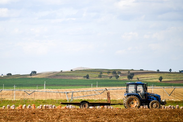 一輛農(nóng)用車行駛在內(nèi)蒙古自治區(qū)呼和浩特市武川縣上禿亥鄉(xiāng)廠漢木臺(tái)村的土豆田間。記者 貝赫 攝