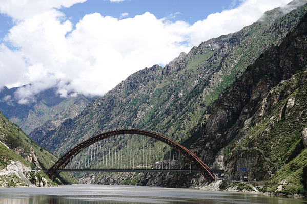 ????藏木雅魯藏布江雙線(xiàn)特大橋全長(zhǎng)525.1米,主拱跨徑430米。記者 劉洪明 攝