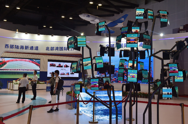 ????這是9月12日在廣西南寧國際會展中心拍攝的西部陸海新通道展區(qū)。新華社記者 劉嶺逸 攝