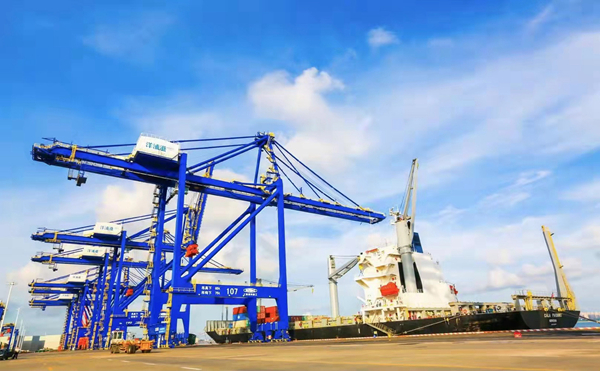 中遠(yuǎn)海運(yùn)洋浦國際集裝箱碼頭吞吐量突破100萬標(biāo)箱。資料照片
