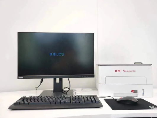 統(tǒng)信的系統(tǒng)、京東方的顯示屏、奔圖的打印機(jī)……在工行北京信創(chuàng)園支行內(nèi),從生產(chǎn)終端到辦公電腦,再到自助機(jī)具,大量使用國產(chǎn)設(shè)備。據(jù)介紹,該網(wǎng)點(diǎn)內(nèi)搭建了以統(tǒng)信UOS“中國系統(tǒng)”為平臺,綜合運(yùn)用龍芯、飛騰 、兆芯等“中國芯”的國產(chǎn)化智能應(yīng)用新生態(tài)場景:從“前臺PC”到“智能終端”、從“普惠金融”到“政務(wù)一體”、從“消保服務(wù)”到“鄉(xiāng)村振興”、從“生命周期墻”到“企業(yè)主題日”,實(shí)現(xiàn)了國產(chǎn)品牌在金融科技領(lǐng)域的全部替代。