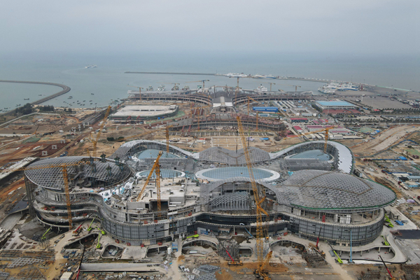 目前,??趪?guó)際免稅城免稅商業(yè)中心正在進(jìn)行屋面網(wǎng)架、外立面幕墻及室內(nèi)精裝等作業(yè)。海口國(guó)際免稅城項(xiàng)目建成后,將成為??谛碌貥?biāo)、國(guó)際旅游消費(fèi)中心的新名片。