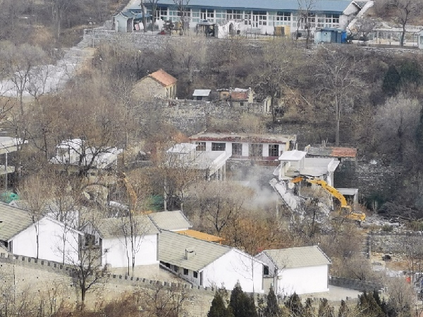 1月14日,濟(jì)南南部山區(qū)管委會組織專門力量對位于天井峪村的新建民宿項目進(jìn)行拆除。