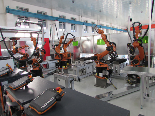 齊齊哈爾黑龍國際冰雪裝備有限公司機(jī)器人生產(chǎn)車間。(采訪對(duì)象供圖)