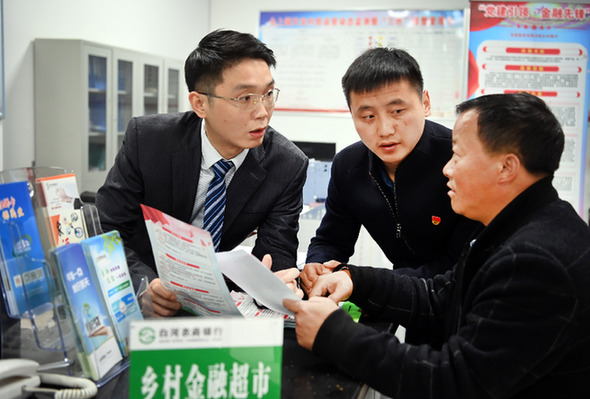 近年來,陜西省安康市白河縣探索建立“鄉(xiāng)村金融超市”,在全縣村黨群服務(wù)中心建立“鄉(xiāng)村金融超市”,設(shè)立便民服務(wù)窗口,由所在村黨支部書記擔(dān)任“金融協(xié)理員”。金融超市推出了“返鄉(xiāng)創(chuàng)業(yè)貸”“鄉(xiāng)土人才貸”“龍頭企業(yè)貸”等特色信貸產(chǎn)品,促進(jìn)群眾金融需求和供給精準(zhǔn)對(duì)接,助力鄉(xiāng)村振興。(資料照片)