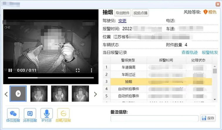 “3月2日,某公司車輛行駛在安徽無為縣境內(nèi)時,駕駛員邊開車邊抽煙”……在閔行區(qū)“危運客運”企業(yè)監(jiān)管平臺上,記者看到從車輛視頻監(jiān)控傳到后臺的一幕。面臨的后果是,該公司扣10分罰款500元,駕駛員扣20分并扣除考核工資60%。