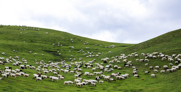 三江集團(tuán)湖東種羊場公司的羊群在天然牧場上覓食。資料照片