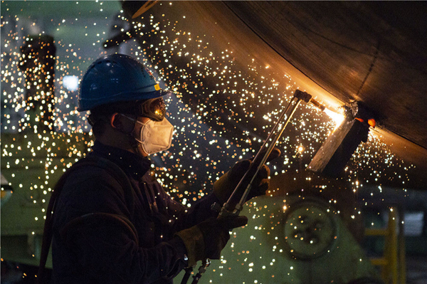 3月28日,工人在哈電集團(tuán)哈爾濱鍋爐廠有限責(zé)任公司生產(chǎn)車間內(nèi)作業(yè),在從嚴(yán)從實(shí)做好防控工作的同時(shí)穩(wěn)產(chǎn)保供。新華社記者 謝劍飛 攝