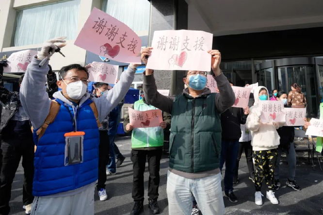 ????“謝謝!感謝你們對(duì)閔行的支持!”閔行區(qū)委書記陳宇劍來到集散點(diǎn)迎接醫(yī)療隊(duì),并抱拳致謝。虹橋鎮(zhèn)的工作人員也打出“熱烈歡迎杭州中醫(yī)院白衣天使”等標(biāo)語迎接。
