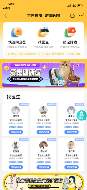 目前,受上海疫情影響,居家隔離的寵物主正面臨著諸多寵物喂養(yǎng)和健康防疫難題。京東健康寵物醫(yī)院建議,如遇到寵糧不足如何科學(xué)喂養(yǎng)、寵物突發(fā)健康狀況如何快速救急、寵物居家隔離慢病如何管理、愛(ài)寵居家情緒如何疏導(dǎo)等寵物問(wèn)題,都可以通過(guò)在京東APP內(nèi)搜索“寵物醫(yī)院”,進(jìn)入寵物醫(yī)院專(zhuān)區(qū),獲得超5000名專(zhuān)業(yè)寵物醫(yī)生的在線免費(fèi)問(wèn)診服務(wù)。