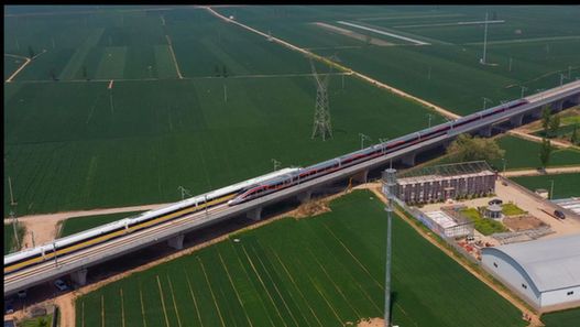 圖為世界領(lǐng)先新型復(fù)興號高速綜合檢測列車上線運(yùn)行
