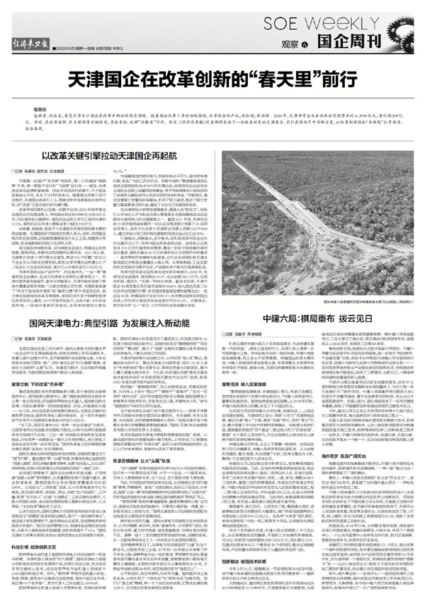 包袱重、效益差,曾是天津不少國企在改革中面臨的現(xiàn)實困境。隨著國企改革三年行動的推進,天津國企混產(chǎn)權(quán),改機制,優(yōu)治理。2021年,天津市管企業(yè)在混改后實現(xiàn)營業(yè)收入2996億元,凈利潤208億元。同時,在能源保供、民生保障等關(guān)鍵時刻,勇挑重?fù)?dān),發(fā)揮“壓艙石”作用。近日,《經(jīng)濟參考報》記者調(diào)研采訪了一些極具特色的天津國企,它們在闖與干中不懈求索,以改革創(chuàng)新這把“金鑰匙”打開新局,沐浴春風(fēng)。