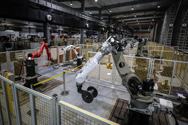 4月28日拍攝的新松機(jī)器人自動化股份有限公司生產(chǎn)車間。