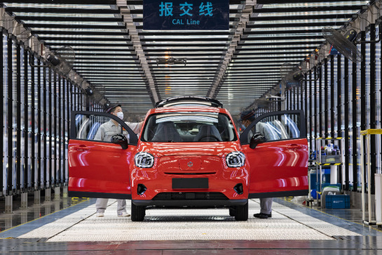 4月26日,在浙江省金華市新能源汽車小鎮(zhèn)零跑汽車有限公司車間里,新能源汽車有序下線。新華社發(fā)(胡肖飛 攝)