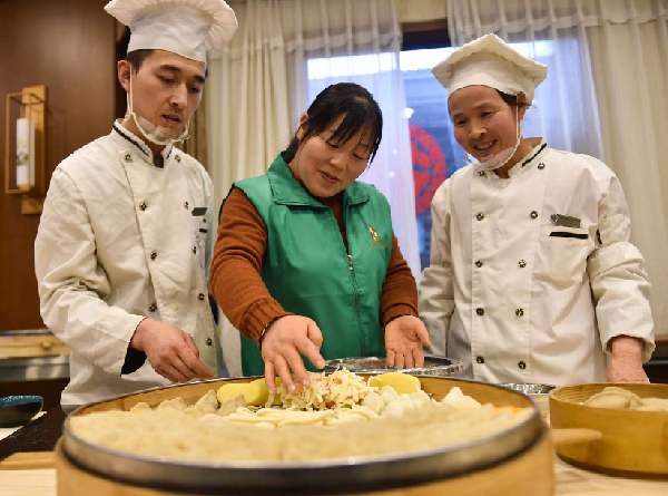 山西省呂梁市嵐縣的學(xué)員學(xué)習(xí)制作“土豆宴大豐收”。本報記者 柴婷 攝