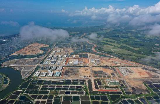 這是正在建設(shè)中的文昌馮家灣現(xiàn)代化漁業(yè)產(chǎn)業(yè)園(6月1日攝,無人機照片)。新華社記者 郭程 攝