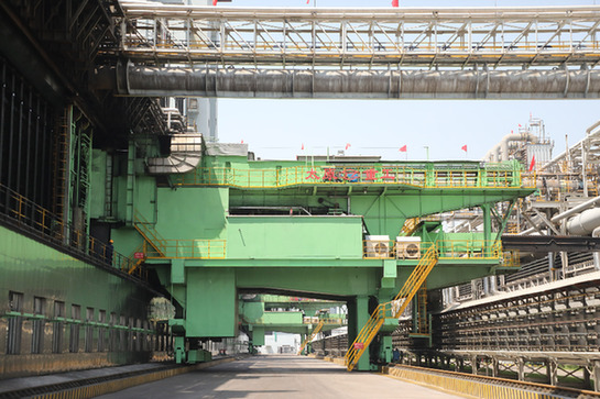太重集團(tuán)研制的推焦車正在晉南鋼鐵集團(tuán)執(zhí)行推焦任務(wù)。資料照片