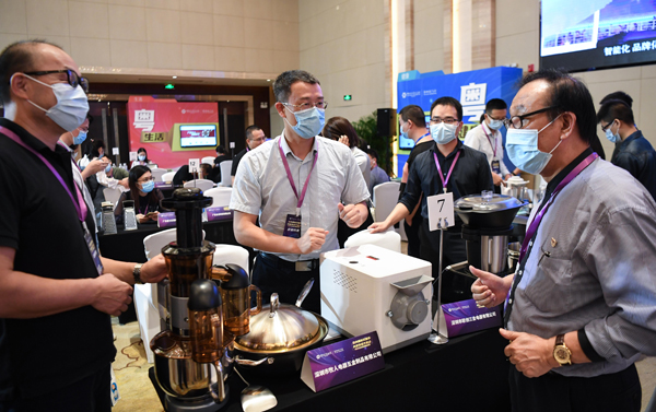在網(wǎng)上廣交會的線下雙循環(huán)貿(mào)易促進(jìn)活動上,企業(yè)代表和采購代表洽談業(yè)務(wù)(資料照片)