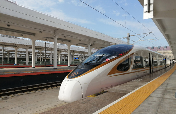 復(fù)興號(hào)高寒動(dòng)車(chē)組在牡丹江站等待發(fā)出。資料照片