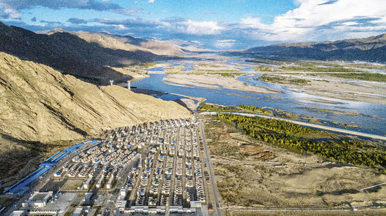 這是位于西藏山南市貢嘎縣的森布日搬遷安置點(diǎn)(2020年9月24日攝,無(wú)人機(jī)照片)。新華社記者 孫非 攝
