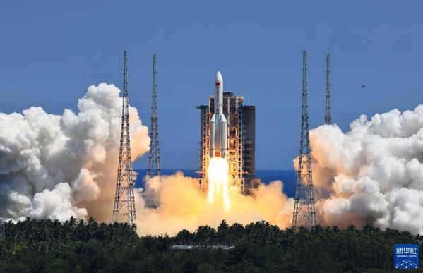 2022年7月24日,搭載問(wèn)天實(shí)驗(yàn)艙的長(zhǎng)征五號(hào)B遙三運(yùn)載火箭,在我國(guó)文昌航天發(fā)射場(chǎng)點(diǎn)火發(fā)射。新華社記者 李剛 攝