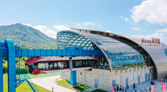 “紅軌”試驗線由江西理工大學牽頭,與江西興國縣人民政府聯(lián)合中鐵六院、中鐵工業(yè)、國家稀土功能材料創(chuàng)新中心等單位共同完成。正線全長約800米,均為鋼構(gòu)高架線,磁浮列車采用2車編組,載客能力為座席32個、定員88人,最高設(shè)計運行速度為80公里每小時。新華社記者 胡晨歡 攝