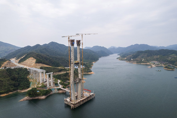 當(dāng)日,官(莊)新(化)高速全線重點(diǎn)控制性工程馬路口資水特大橋主墩封頂,即將進(jìn)入橋梁上構(gòu)施工階段,為早日通車運(yùn)行奠定了基礎(chǔ)。馬路口資水特大橋位于湖南省益陽市安化縣柘溪水庫內(nèi),全長(zhǎng)1187米,主跨500米,其中水中主塔高202.4米。