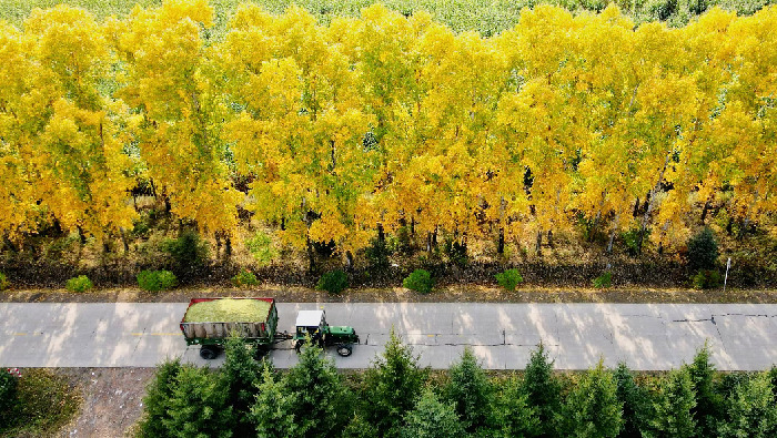 北大荒集團(tuán)北安分公司趙光農(nóng)場有限公司的青貯玉米已經(jīng)迎來收獲,拉開了當(dāng)?shù)睾堤锸斋@序幕。一輛輛收獲機(jī)車前進(jìn)著將整片玉米“吃”進(jìn)去,連秸稈帶玉米棒一起粉碎后再“吐”出來,旁邊的運(yùn)輸車輛緊緊跟隨,一車裝滿后,新鮮的青貯玉米被直接運(yùn)往養(yǎng)殖場入窖壓實(shí)儲藏。