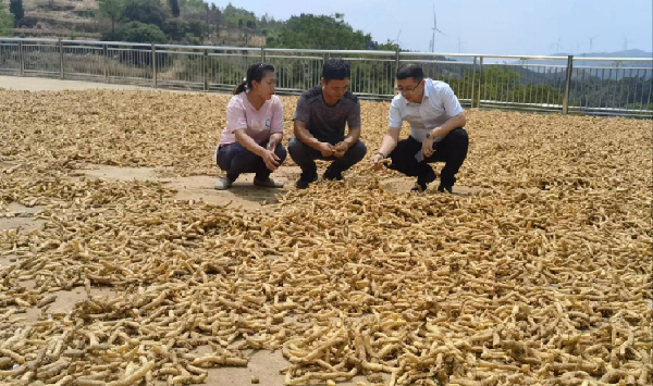 桂陽村行行長在蓮塘鎮(zhèn)兩路村對玉竹種植戶進行貸前調(diào)查 (資料照片)
