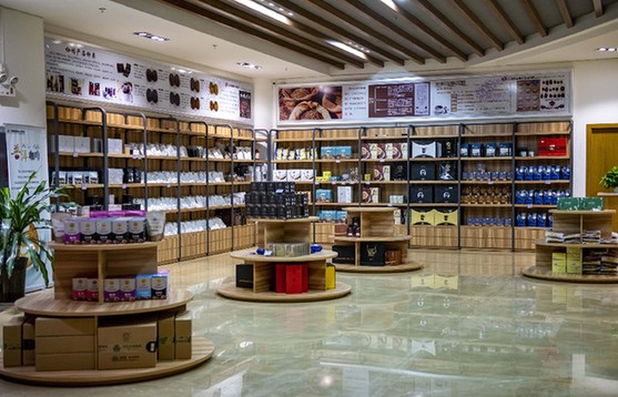 設(shè)立在普洱的云南國(guó)際咖啡交易中心內(nèi)展示不同種類的咖啡產(chǎn)品。新華社記者 陳欣波 攝