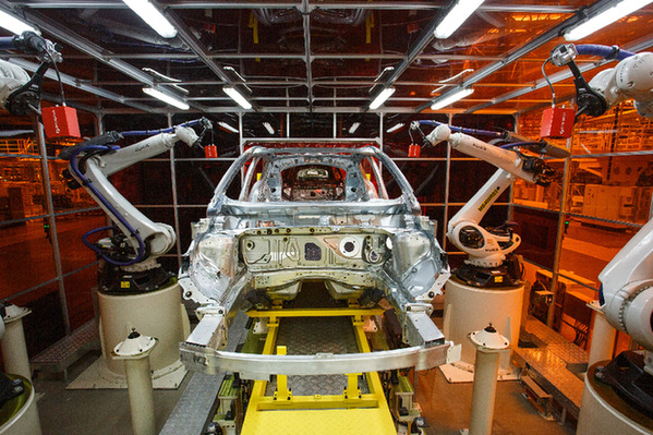 在余姚的寧波中意生態(tài)園領(lǐng)克汽車全球質(zhì)量中心,機(jī)器人完成自動(dòng)沖壓、焊接、涂裝、裝配等生產(chǎn)工藝。資料照片