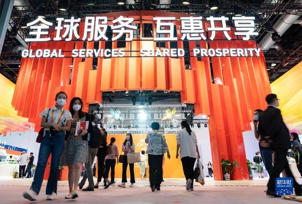 觀眾在2022年中國國際服務貿(mào)易交易會上參觀中國服務貿(mào)易成就展專區(qū)(2022年9月1日攝)。新華社記者 才揚 攝