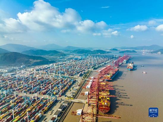 這是浙江寧波舟山港穿山港區(qū)(2021年12月24日攝,無人機照片)。新華社發(fā)(湯健凱 攝)