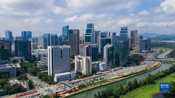 深圳市南山區(qū)大沙河畔的科技園(2020年9月27日攝,無人機照片)。新華社記者 毛思倩 攝