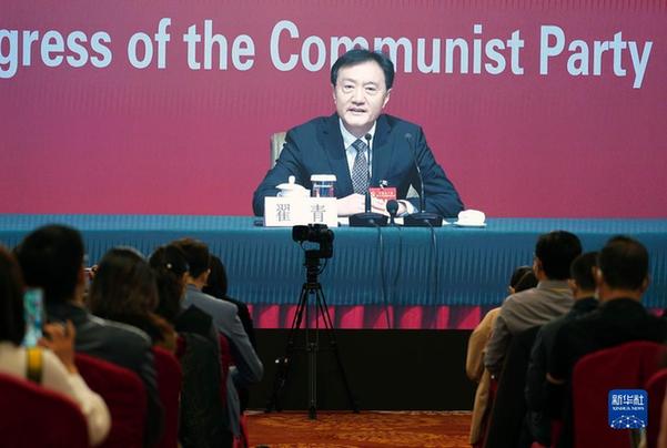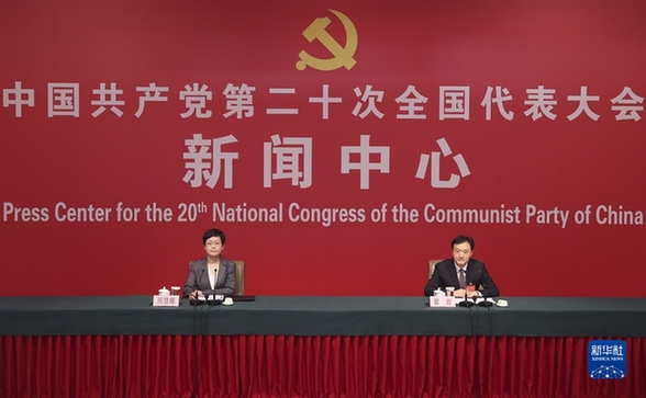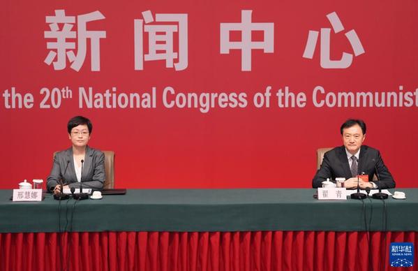 10月21日,中國(guó)共產(chǎn)黨第二十次全國(guó)代表大會(huì)新聞中心舉行記者招待會(huì)。生態(tài)環(huán)境部黨組成員、副部長(zhǎng)翟青圍繞“建設(shè)人與自然和諧共生的美麗中國(guó)”主題與記者交流。新華社記者 賈浩成 攝