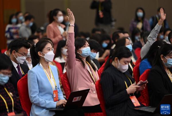 這是記者在分會(huì)場(chǎng)舉手提問(wèn)。新華社記者 金良快 攝