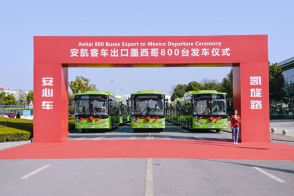 2022年3月,“800輛安凱客車出口墨西哥發(fā)車儀式”在安徽安凱客車廠區(qū)舉行。800輛10.5米安凱天然氣公交車的載夢遠航,為美洲及全球的低碳發(fā)展傳遞“綠色能量”,同時也為中國客車出口帶來了強勁的增長動能。