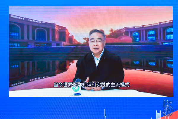 圖為:中國工程院院士、天津中醫(yī)藥大學名譽校長張伯禮視頻演講