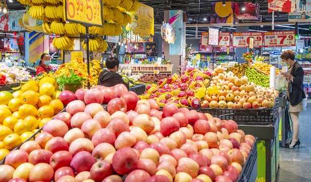 11月9日,顧客在貴州省從江縣一家超市內(nèi)選購水果。