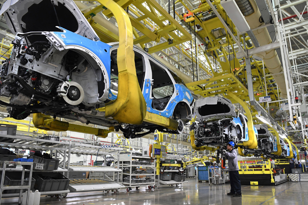 11月12日,工人在安慶一家汽車企業(yè)生產(chǎn)線上工作。