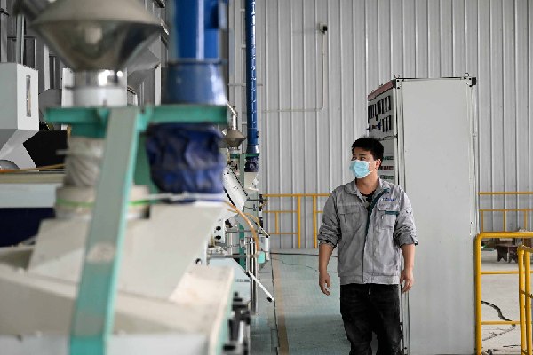 11月3日,工作人員在安徽省蒸谷米食品科技有限公司生產(chǎn)車間內(nèi)工作。