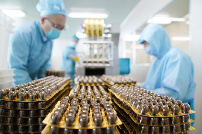 在哈藥集團世一堂中藥飲片有限責任公司的生產車間,工作人員在生產藥品。(資料照片)