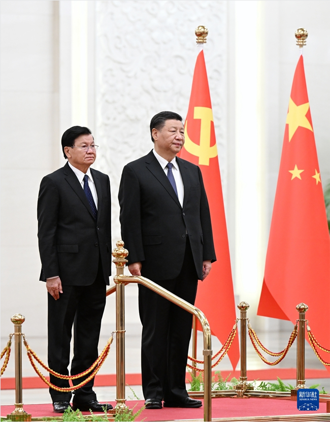 新華社北京11月30日電 11月30日,中共中央總書記、國家主席習近平在人民大會堂同老撾人民革命黨中央總書記、國家主席通倫舉行會談。雙方強調(diào),要秉持“長期穩(wěn)定、睦鄰友好、彼此信賴、全面合作”方針和“好鄰居、好朋友、好同志、好伙伴”精神,政治上互尊互信、經(jīng)濟上互惠互利、人文上相知相親,不斷深化中老命運共同體建設,為推動構(gòu)建人類命運共同體作出積極努力和貢獻。